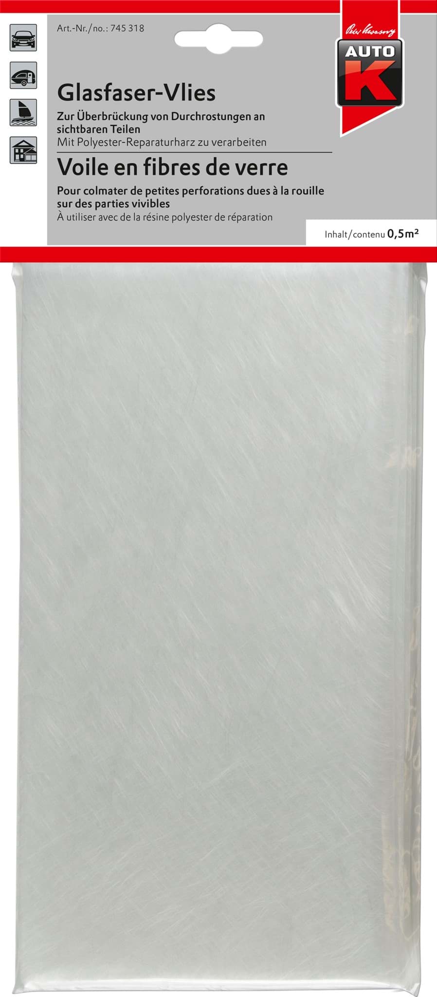 Die AVO Glasfaser-Matte ist ein besonders dichtes und festes Material mit hoher Widerstandskraft. Ideal für Reparaturen an vibrationsbeanspruchten Teilen wie Kotflügeln, selbst bei großflächigen Schäden. Anwendbar zur Beseitigung von Durchrostungen, Rissen, Löchern an Autokarosserien, Wohnwagen, Booten, Behältern etc.